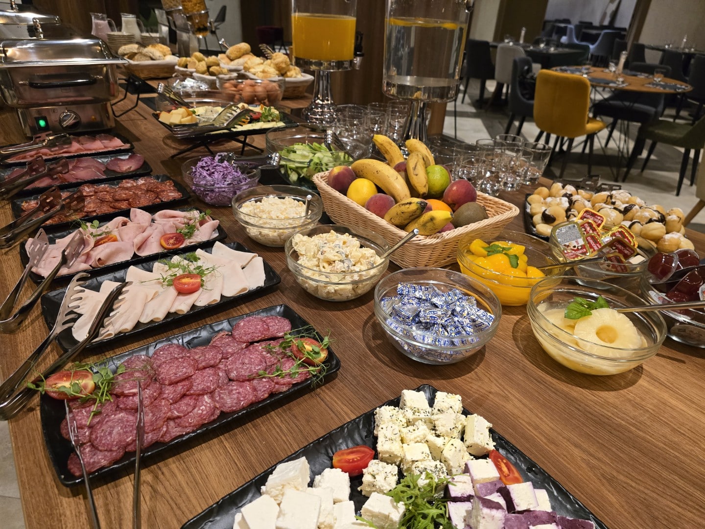 All meals are served buffet-style, featuring a rich selection of hot and cold dishes, side dishes, salads, and desserts.