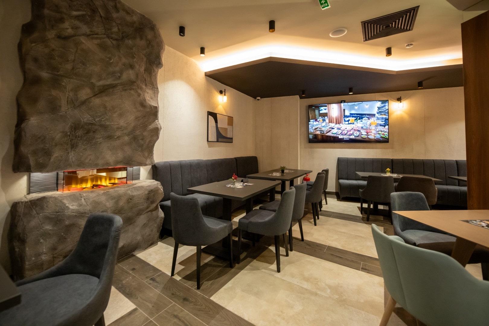 Enjoy a spacious and modernly designed restaurant spread over two levels. Whether you’re having breakfast with a view, a peaceful lunch, or a cozy dinner under warm lighting – every meal is an experience of its own.